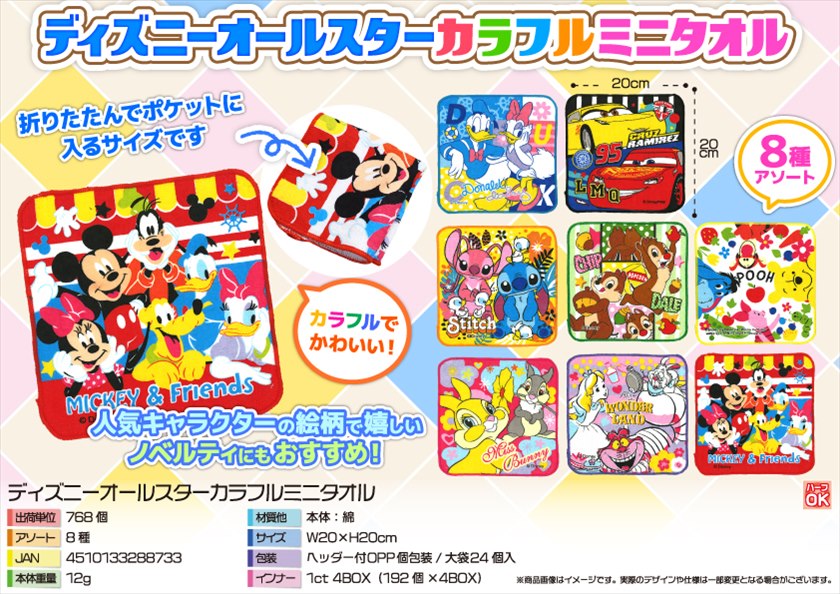ディズニーオールスターカラフルミニタオル*12